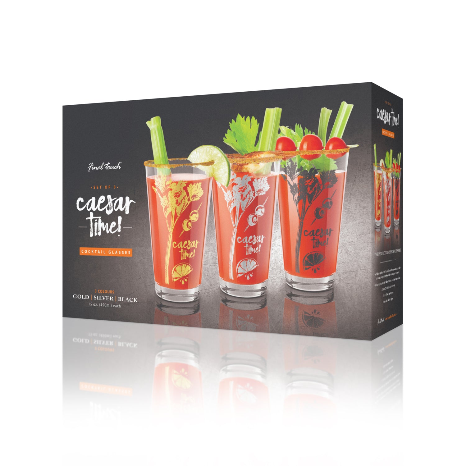 Caesar Time Cocktail Glasses - Set of 3 - Gold, Silver & Black